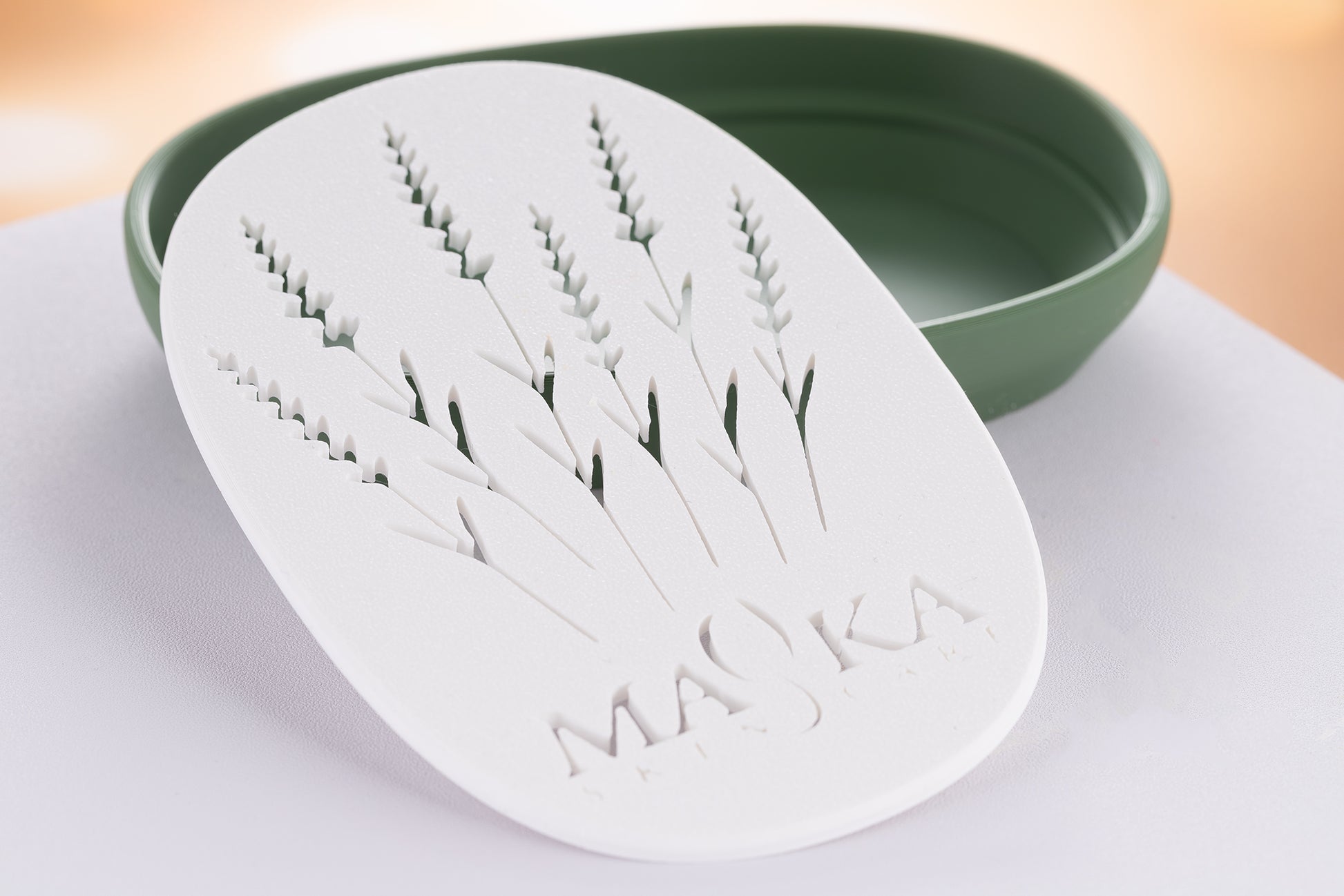 PLA (polilaktyd) to tworzywo pochodzenia roślinnego, powstające z kukurydzy, trzciny cukrowej lub buraków. W odróżnieniu od plastików ropopochodnych, PLA jest biodegradowalne w warunkach przemysłowych, a jego produkcja wiąże się z niższą emisją CO₂. PLA Sunlu jest nietoksyczne, bezzapachowe i bezpieczne w codziennym użytkowaniu – idealne do kontaktu z wodą i mydłem. PLA nie jest odporny na długotrwałe działanie warunków atmosferycznych (słońce, deszcz, mróz oraz temperatura powyżej 60°C). Najlepiej sprawdza się wewnątrz pomieszczeń. Ponieważ mydelniczki są drukowane ręcznie, delikatne różnice w fakturze czy odcieniu to naturalny efekt procesu druku nadający każdej z mydelniczek wyjątkowy charakter.