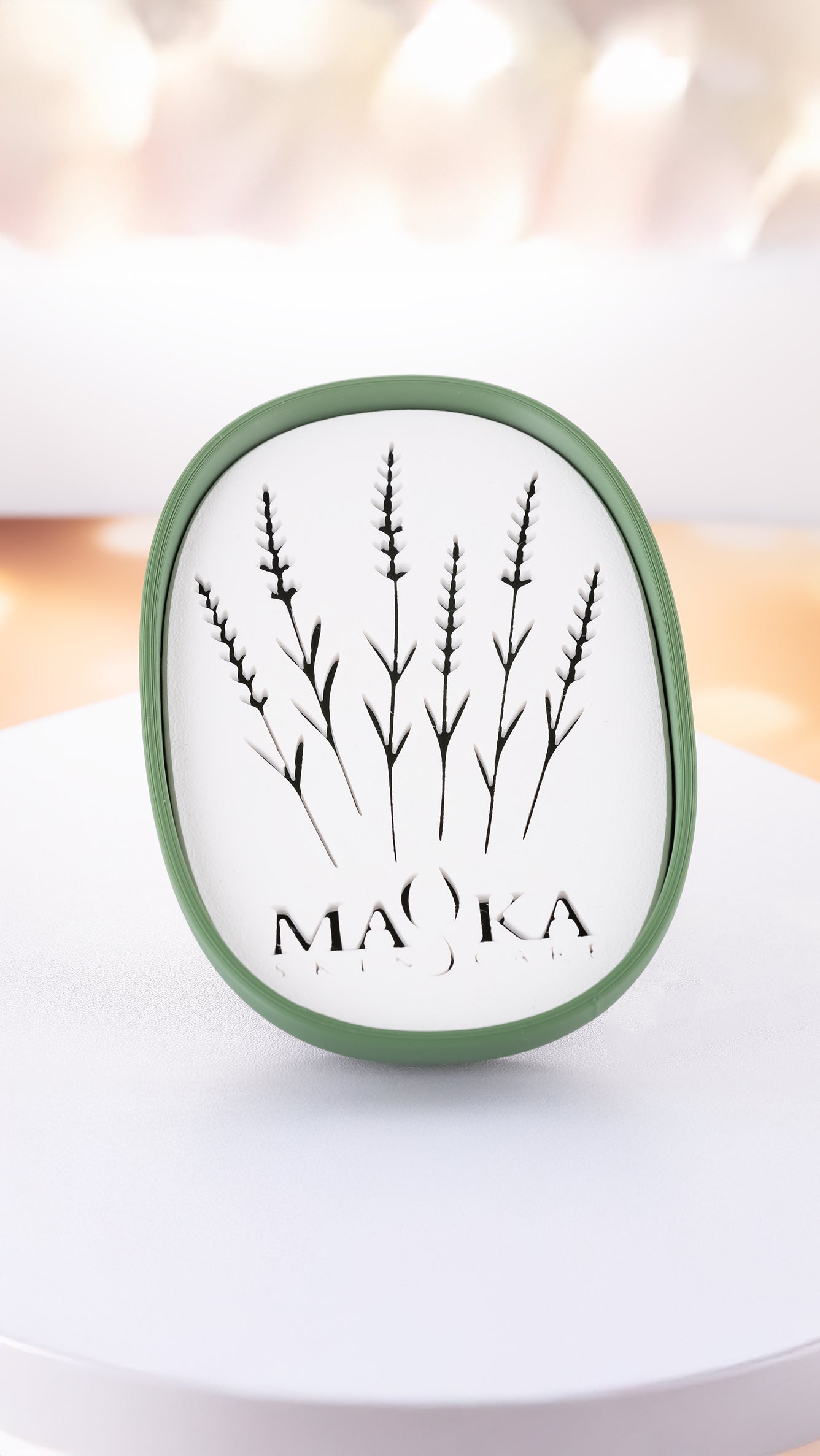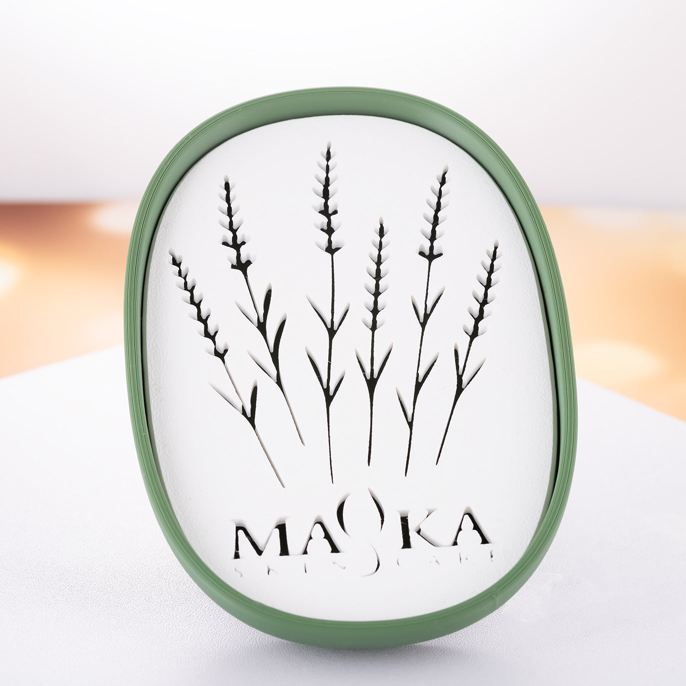 Mydelniczka z motywem kwiatowym i logo Mayka Skincare łączy estetykę wykonania z dbałością o środowisko. Dzięki otworom w kształcie lawendy, nadmiar wody będzie spływał do podstawki, pozostawiając Twoje ulubione mydło suche i nie rozmoknięte, a umywalkę idealnie czystą. Na mydelniczce z naszym logo będą pięknie prezentowały się naturalne mydła Mayka.